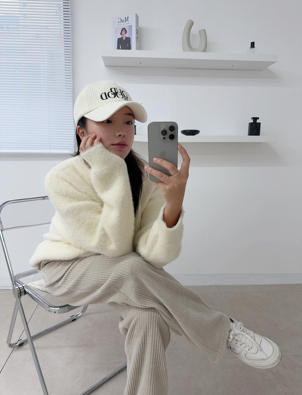 니트 : 아이보리 / 모자 : 아이보리 / 팬츠 : 베이지