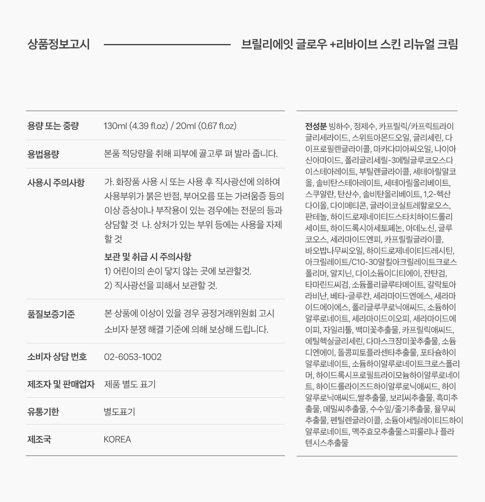브릴리에잇 글로우+리바이브 스킨 리뉴얼 크림