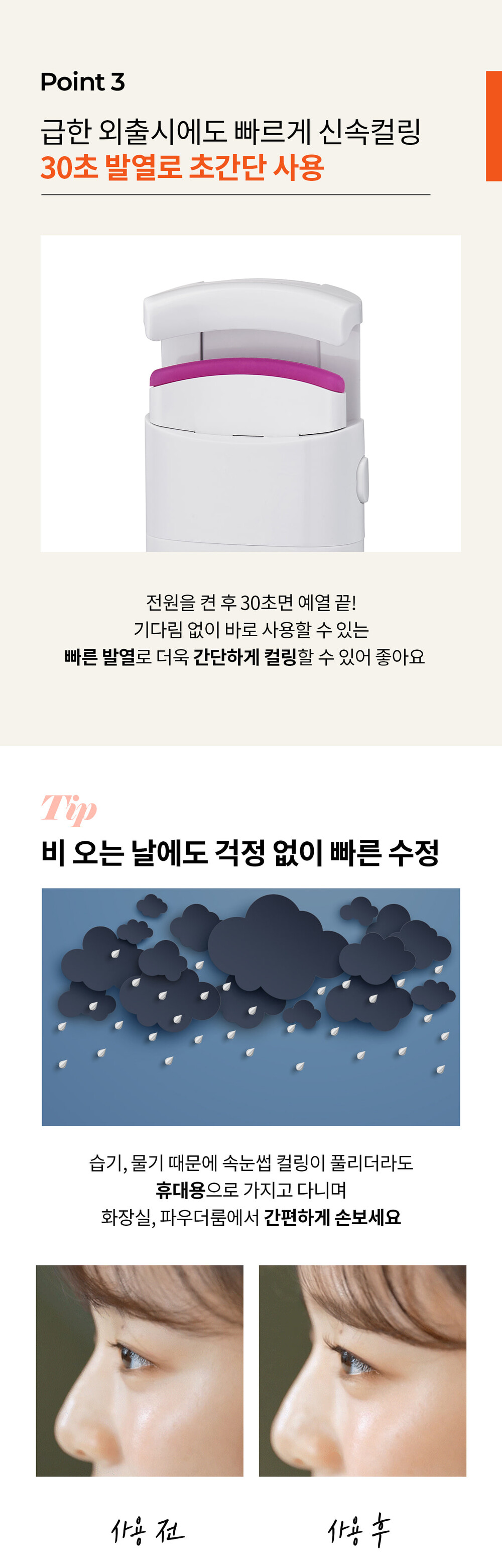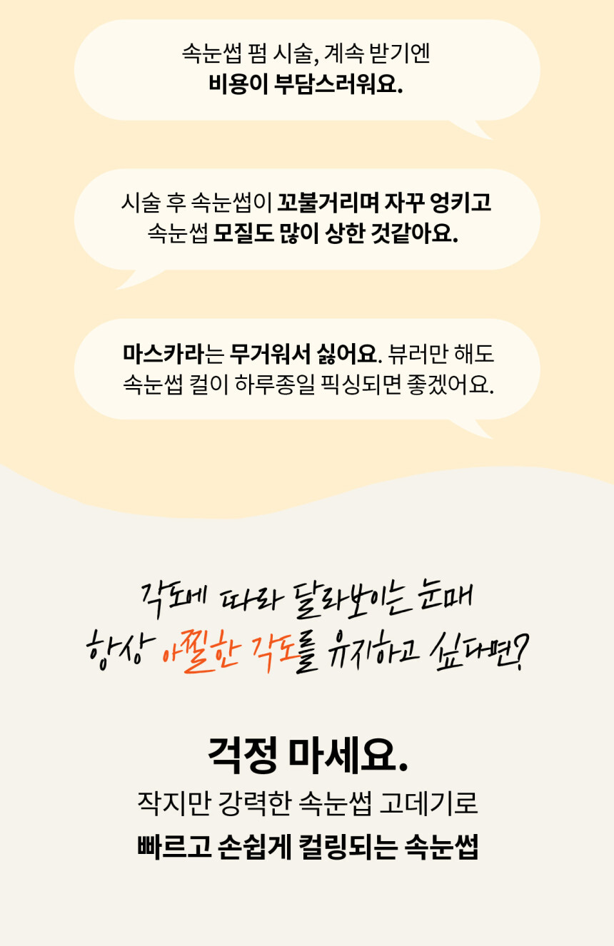 일반뷰러는 속눈썹찝을때 힘도 많이 들어가고,