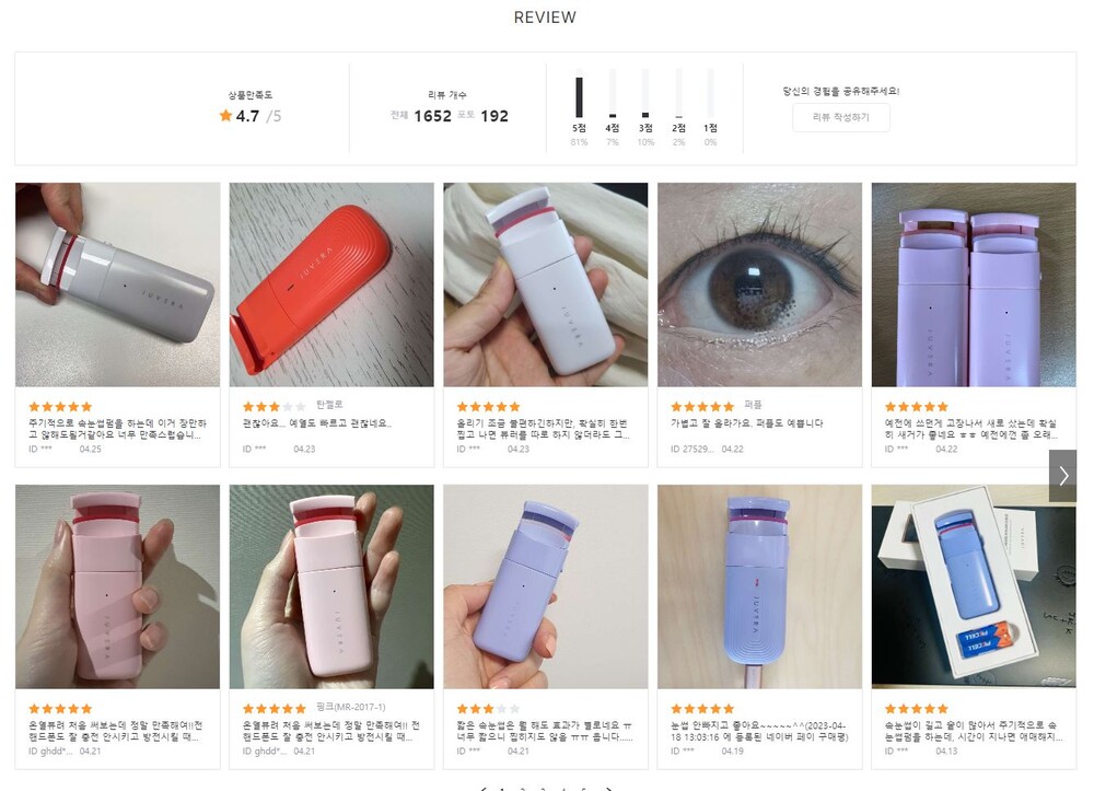 맨아래 사진들은 실제로 쥬베라 온열뷰러를 사용한